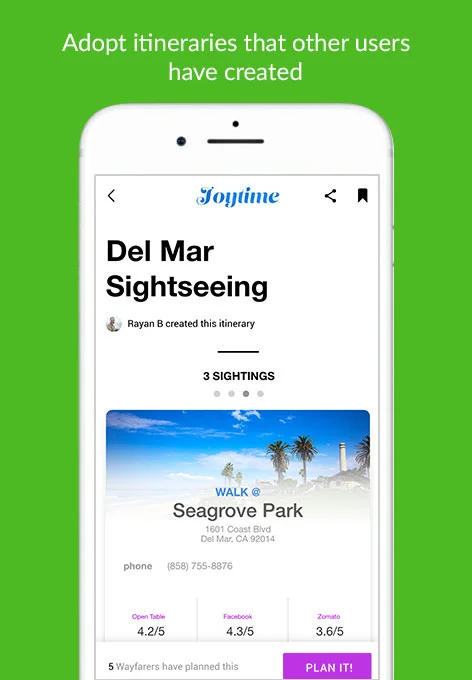 Joytime is a planning companion that allows you to discover experiences based on what others have experienced around you.